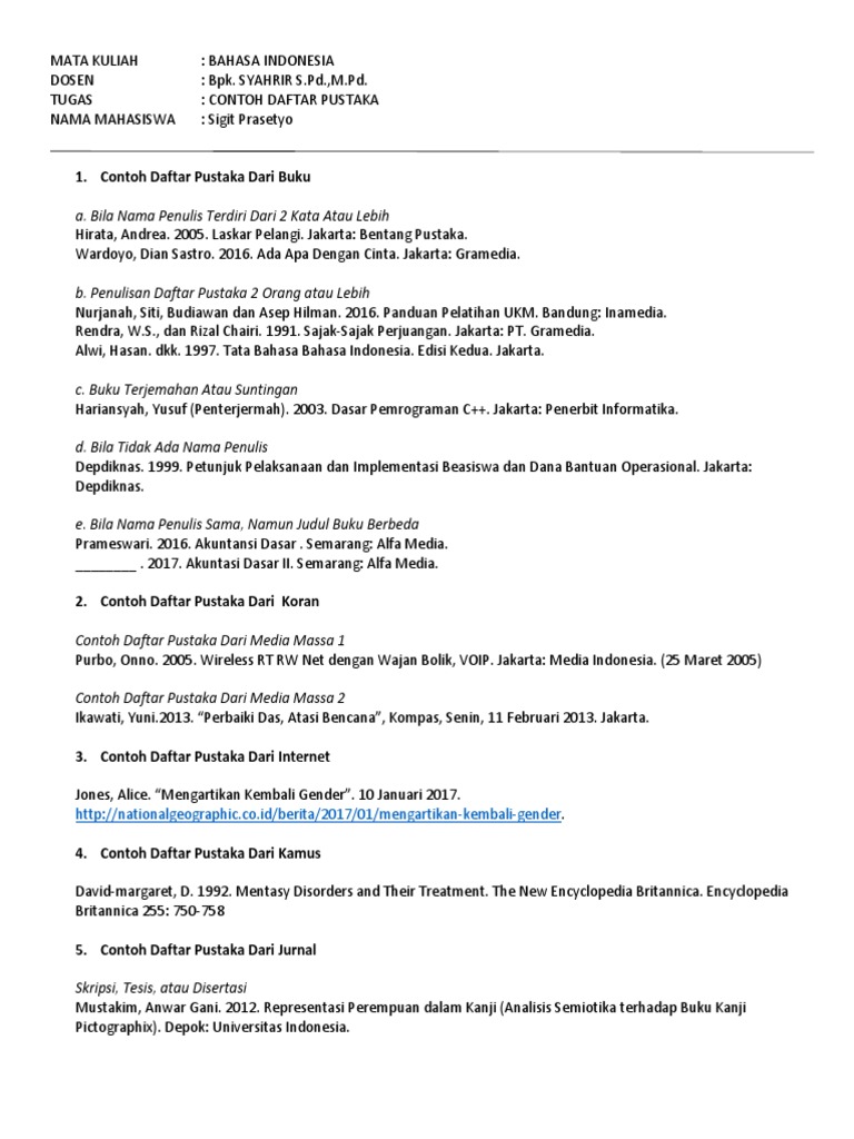 Contoh Dan Cara Penulisan Daftar Pustaka Dari Buku Jurnal Yang