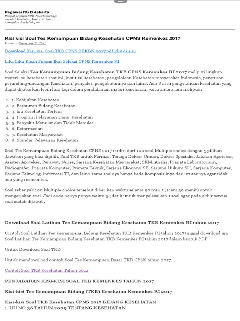 Kisi Kisi Soal Tes Kemampuan Bidang Kesehatan Cpns Kemenkes 2017
