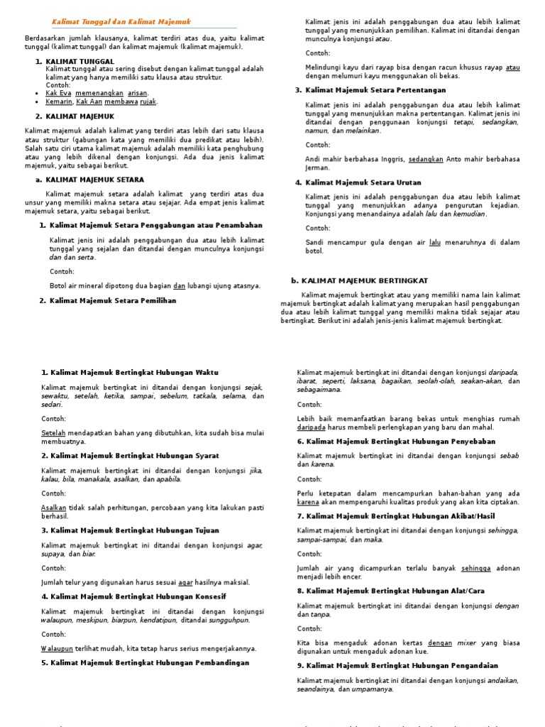 7 Contoh Kalimat Majemuk Setara Bertingkat Beserta Polanya Kalimat Id