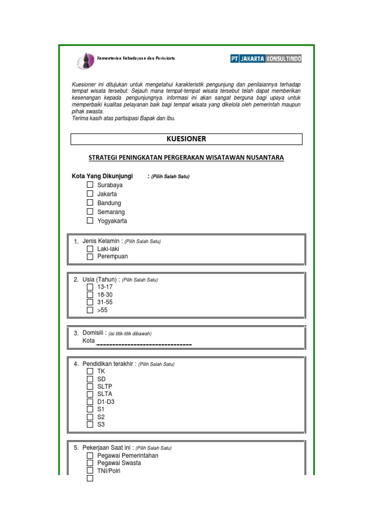 Kuesioner Pariwisata Objek Wisata