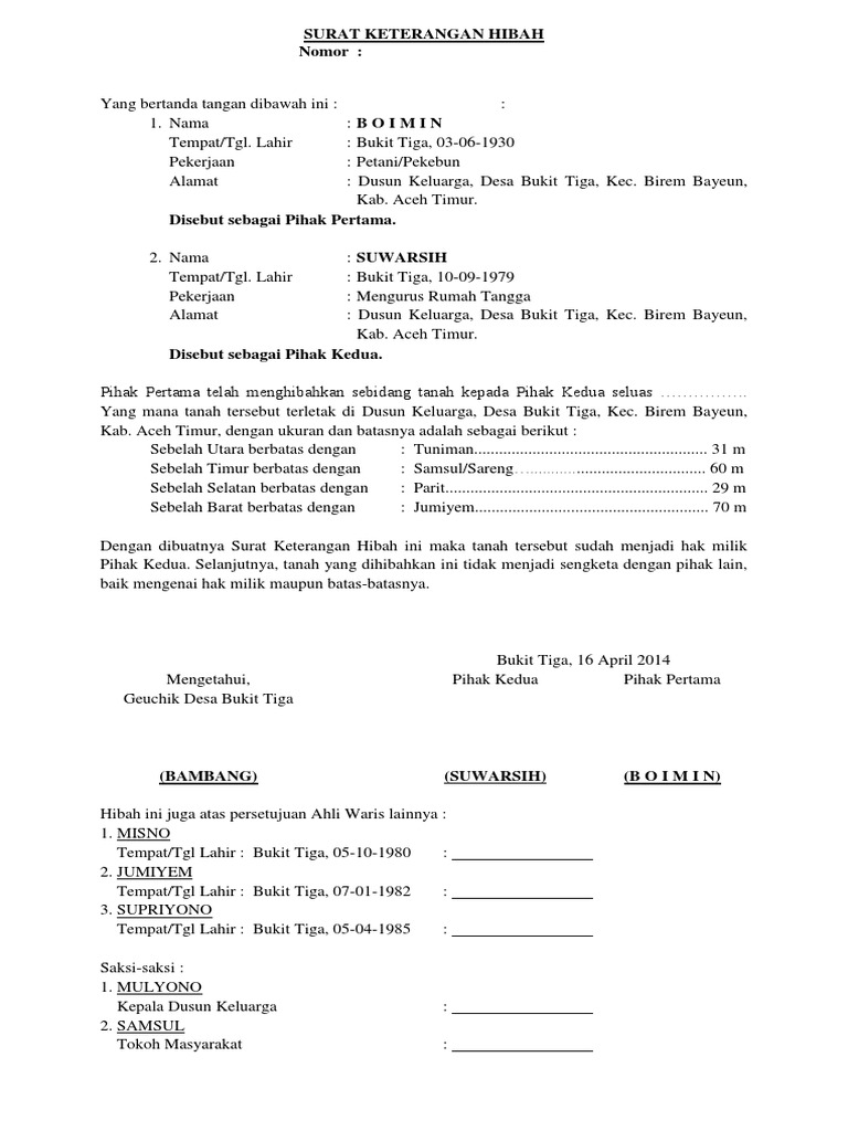 Contoh Surat Keterangan Tanah Dari Kepala Desa