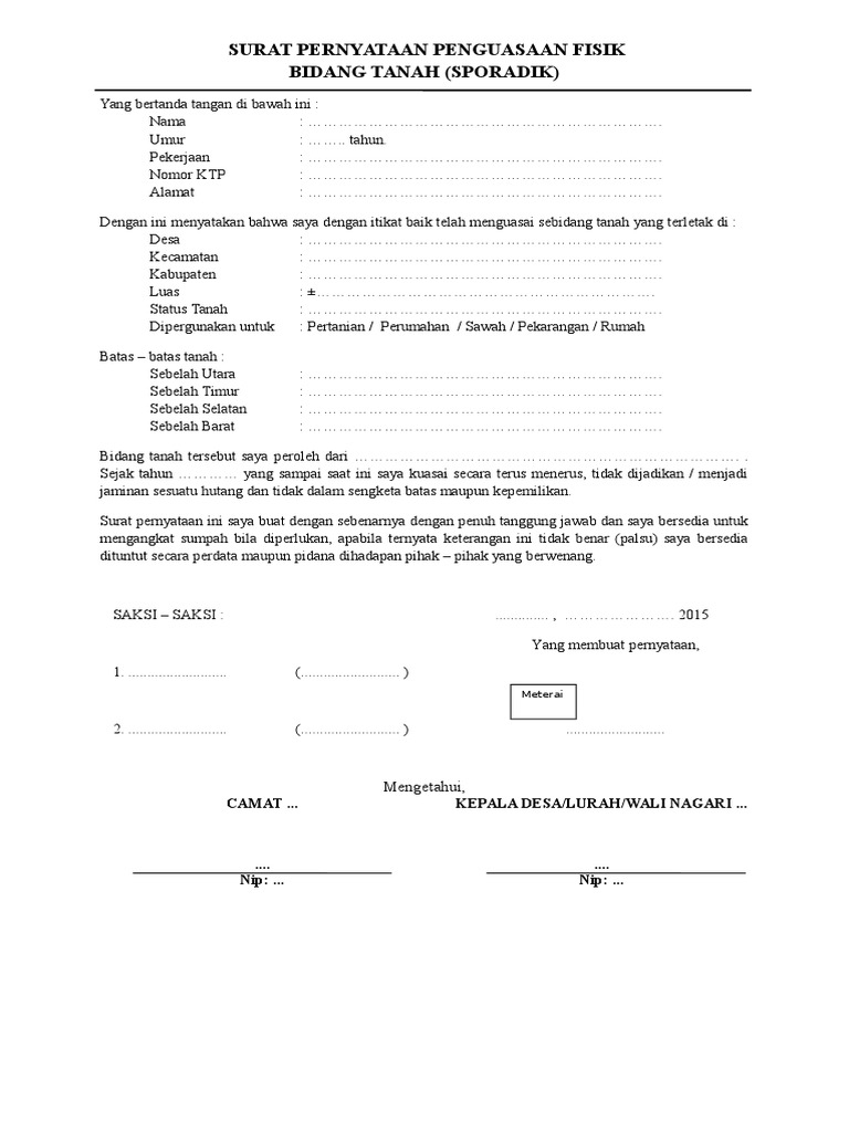 110499776 Surat Pernyataan Kepemilikan Tanah