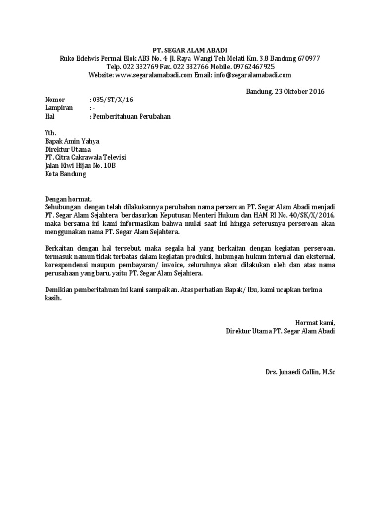 Contoh Surat Pemberitahuan Ganti Nama Perusahaan My First Jugem
