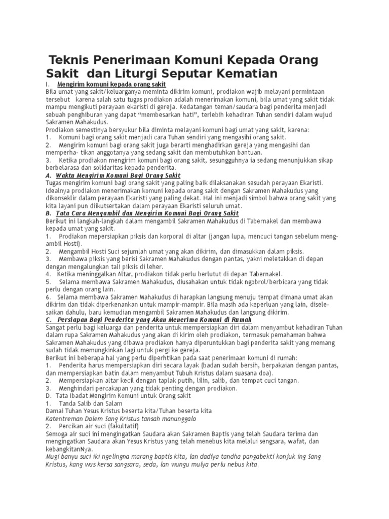 Teknis Penerimaan Komuni Kepada Orang Sakit