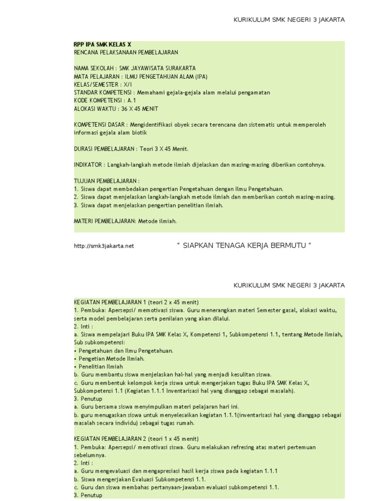 Contoh Rpp Ipa Kelas X Made Suarda Academia Edu
