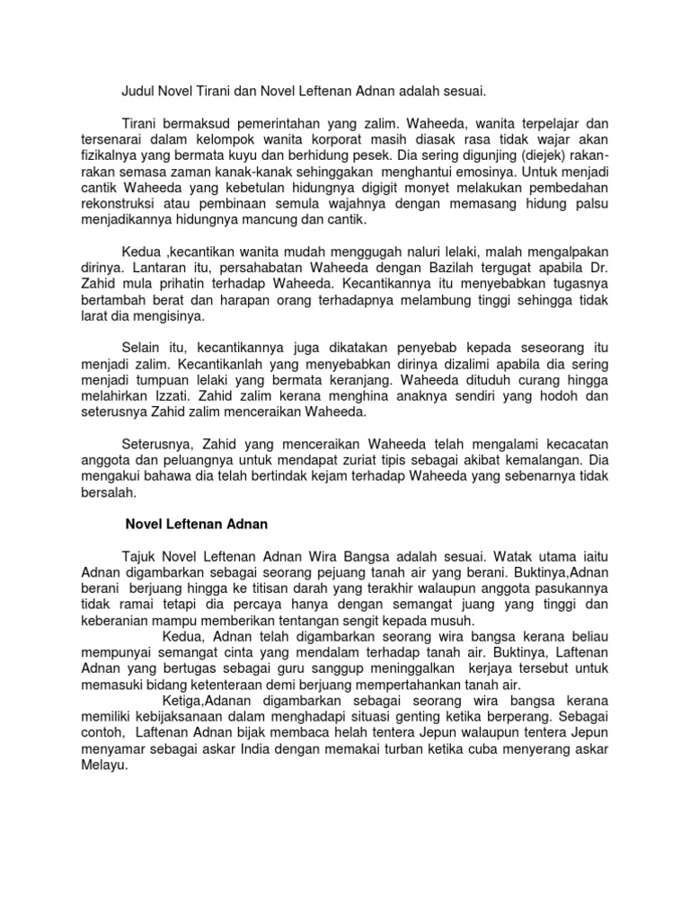 Judul Novel Tirani Dan La Adalah Sesuai