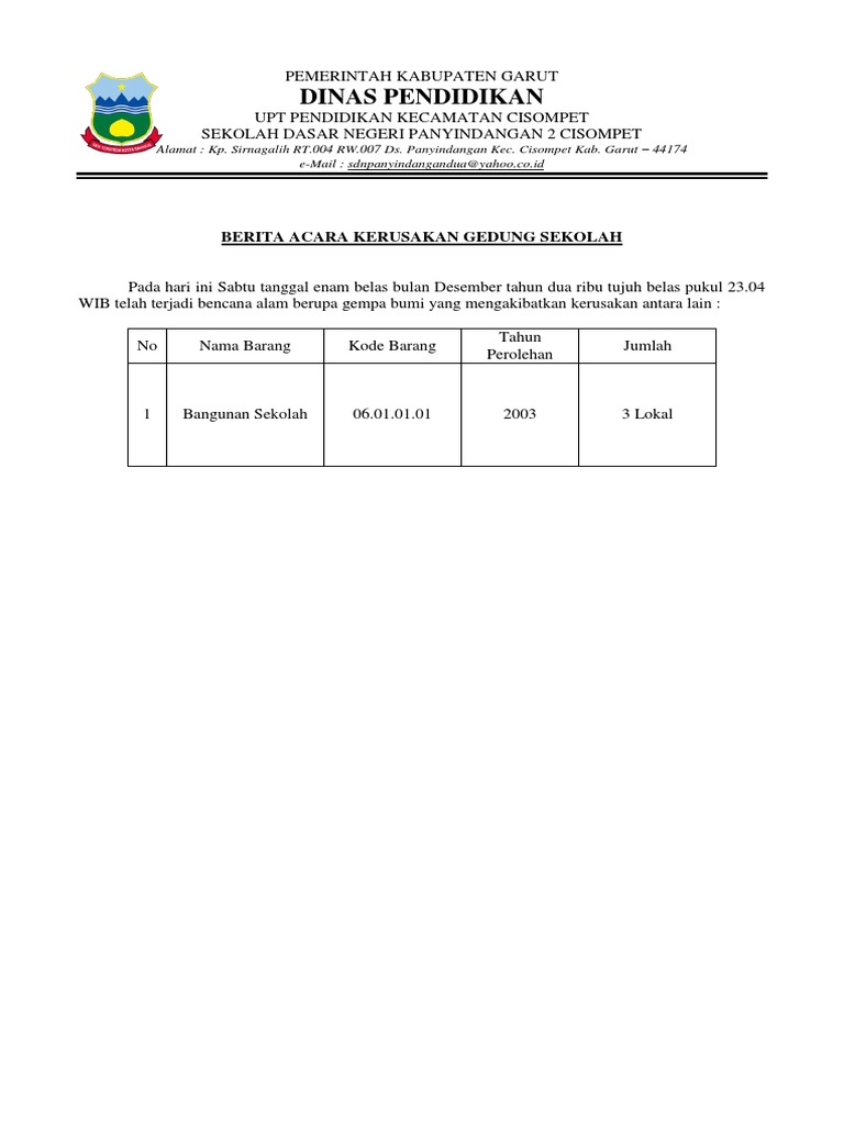 Contoh Surat Berita Acara Kerusakan Barang Inventaris Surat 26