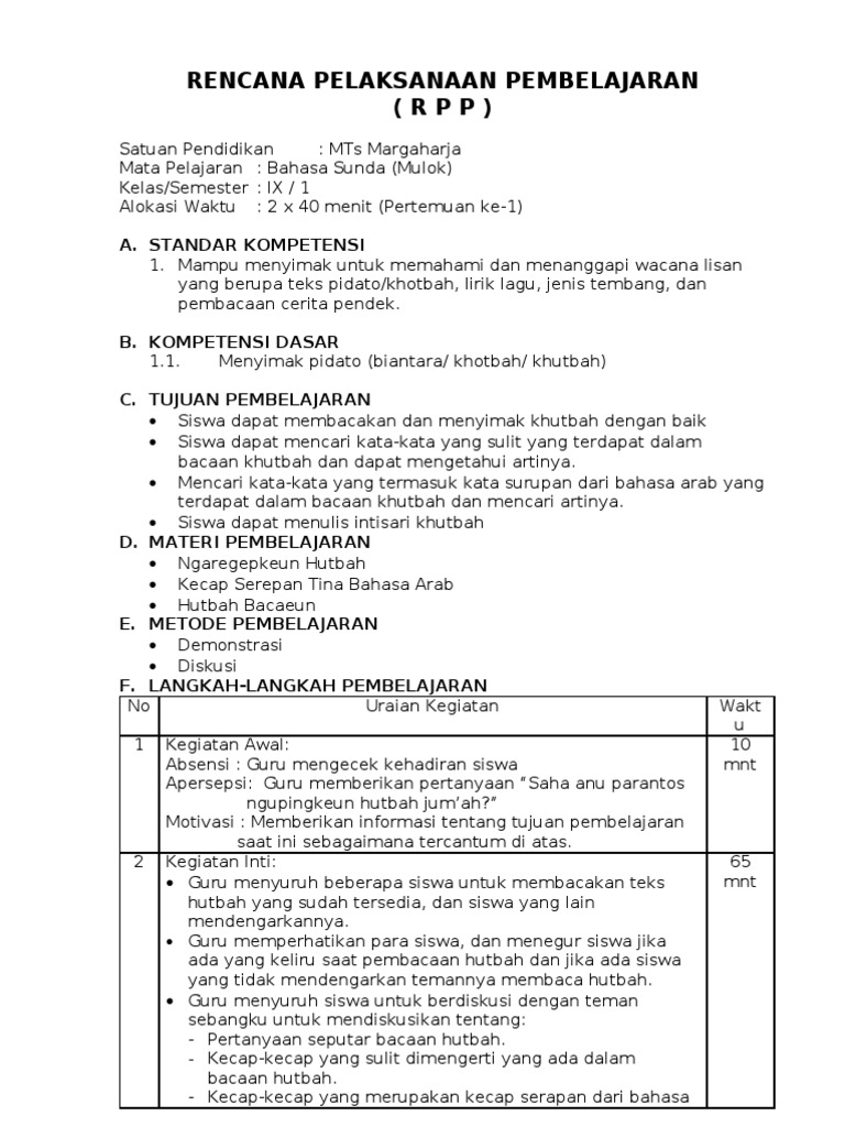 Rpp Bahasa Sunda Kelas Ix Semester 1