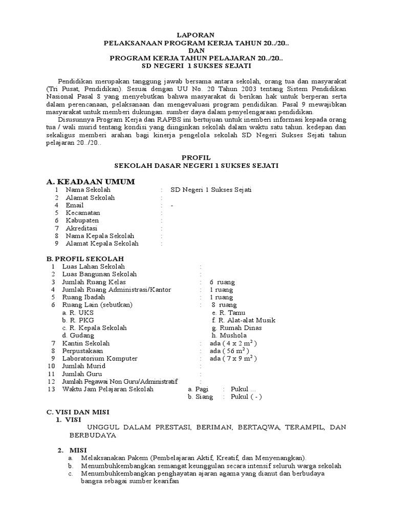 Contoh Progam Kerja Dan Laporan Program Kerja Tahunan Sekolah