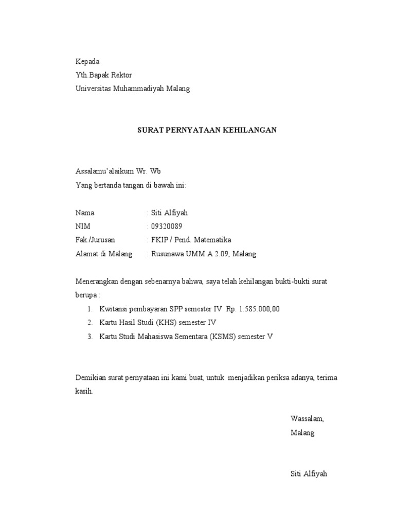 Contoh Surat Pernyataan Kehilangan Yang Anda Perlukan Contoh Surat