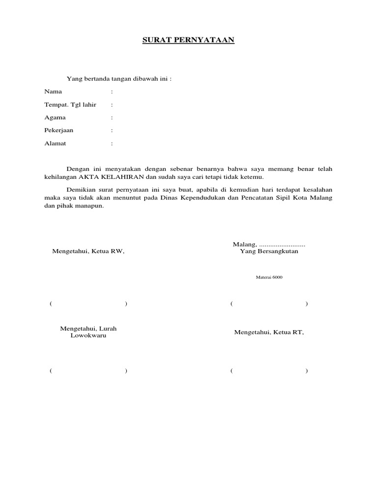 Ada contoh surat pernyataan perjanjian contoh surat pernyataan kesalahan contoh surat pernyataan diri contoh surat pernyataan kerja contoh surat pernyataan sekolah contoh surat pernyataan hutang contoh surat pernyataan bahasa inggris dan contoh surat pernyataan lainnya. Surat kehilangan biasanya dikeluarkan pihak berwenang seperti polisi atas laporan yang merasa kehilangan.