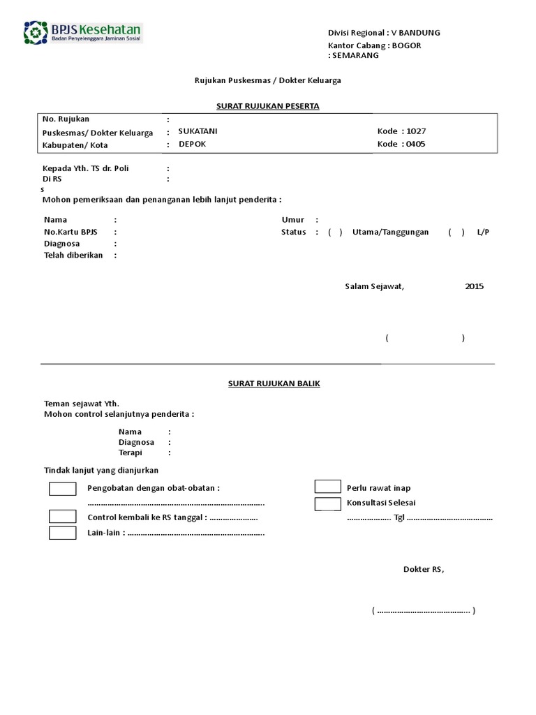 Puskesmas dokter sukatani kode. Contoh surat rujukan puskesmas ke rumah sakit download. Kabupaten kota kepada yth.