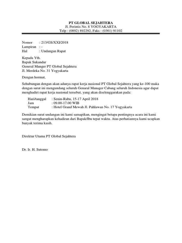 7 Contoh Surat Resmi Perusahaan Rapat Dinas Pemerintah Sekolah