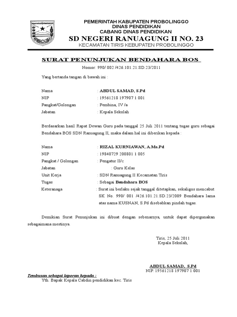 Sk Penunjukan Bendahara Bos Docx Adi Patriansah Academia Edu