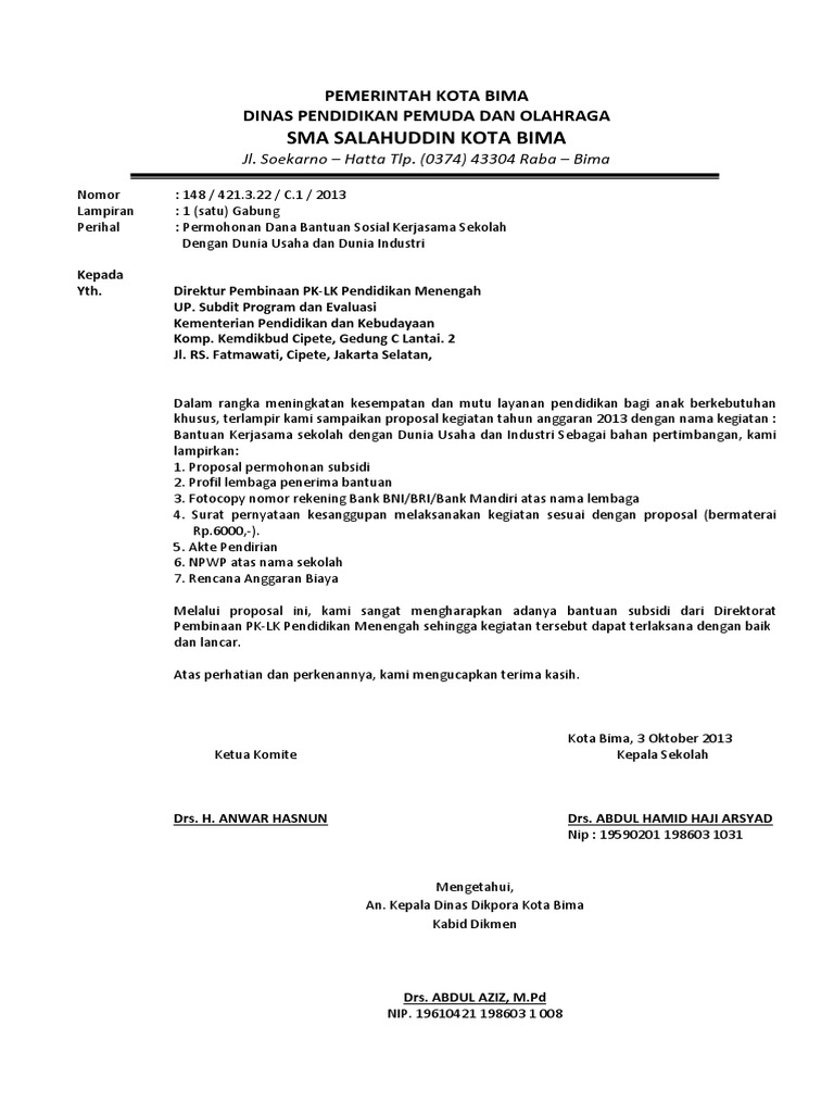 10 Contoh Surat Permohonan Bantuan Dana Izin Kerjasama Dll