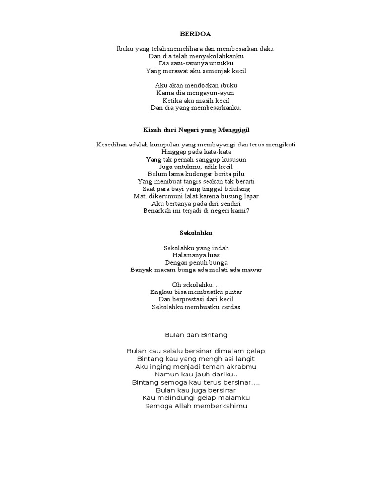 Contoh puisi tentang teman penhianat bahasa inggris informasi yang saat ini sedang anda cari yaitu contoh puisi tentang teman penhianat bahasa inggris. Dibawah ini telah kami sajikan artikel yang berkaitan dengan contoh puisi tentang teman penhianat bahasa inggris sebagai salah satu referensi dan perbandingan harga. 5 contoh puisi pendek tentang sahabat puisi merupakan salah satu dari jenis karya sastra yang menjadikan kata kata sebagai medium seni yang disampaikan oleh penciptanya baik dalam bentuk lisan ataupun tulisan.
