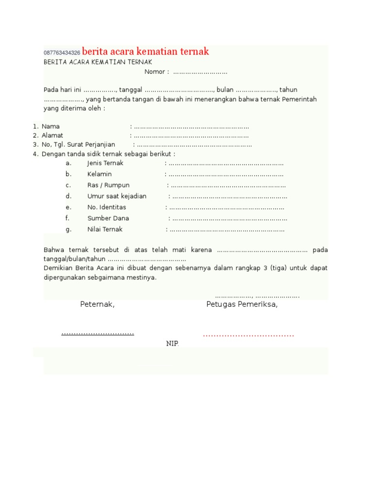 Demikian berita acara pemeriksaan kejadian ini saya buat dengan sebenarnya serta dapat dipertanggung jawabkan atas kebenarannya kemudian ditutup dan ditanda tangani pada hari dan tanggal serta tempat seperti tersebut diatas. Secara garis besar surat berita acara adalah surat dinas yang bisa juga dijadikan bukti yang berisi catatan catatan resmi berkaitan dengan perjalanan kedinasan peristiwa atau kegiatan tertentu. Contoh berita acara dalam berbagai keperluan berita acara adalah naskah dalam mengesahkan suatu kejadian yang bersifat resmi atau dinas baik itu dalam peristiwa perubahan status dan lain lain bagi suatu permasalahan baik berupa perencanaan pelaksanaan maupun pengendalian kebijaksanaan pimpinan.