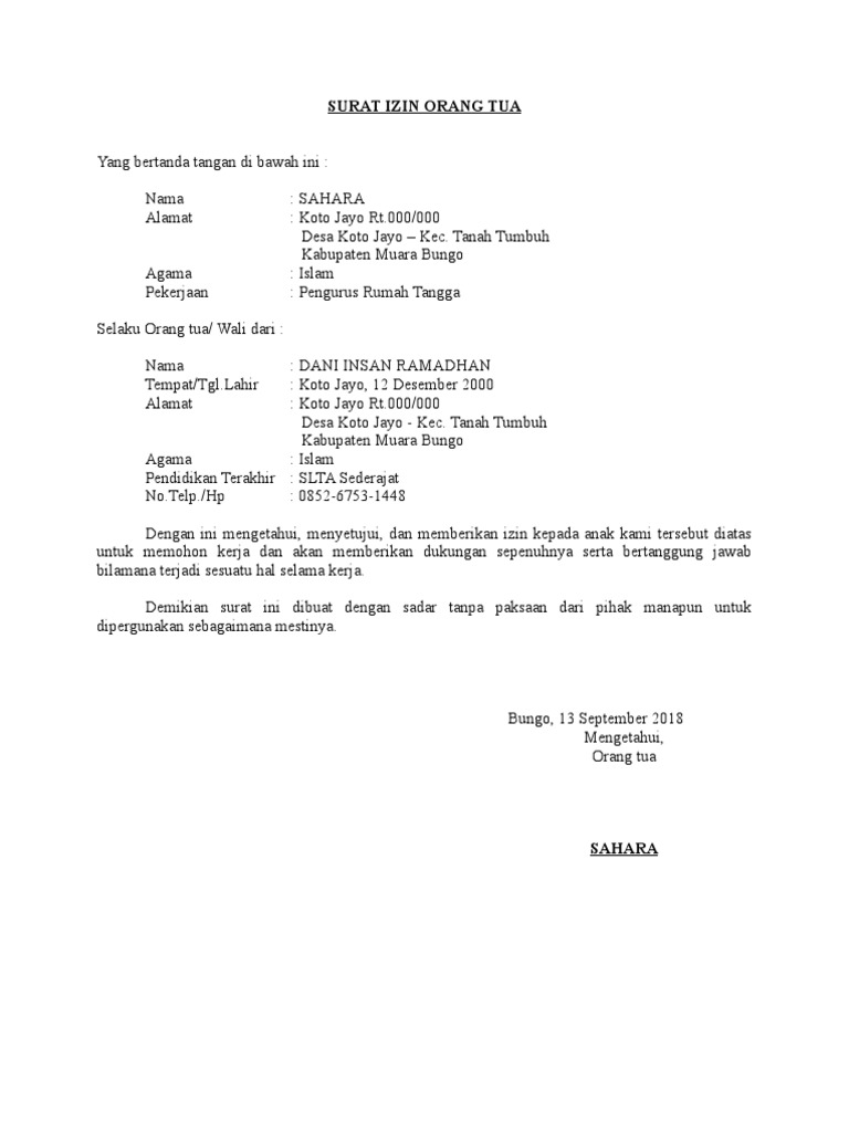 Sebagai tambahan referensi silahkan lihat juga contoh surat izin orang tua reply delete. Informasi lowongan kerja 2018. Selamat malam sahabat semuanya.