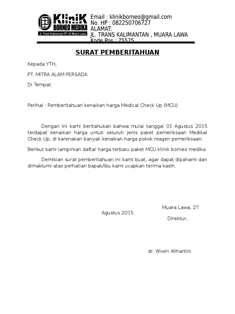 Ok terima kasih semoga artikel contoh surat pemberitahuan kenaikan harga barang kepada pelanggan ini bisa membantu kamu dan sebagai tanda terima kasih bantu sebarkan artikel ini siapa tau artikel contoh surat pemberitahuan kenaikan harga barang kepada pelanggan ini bisa bermanfaat atau artikel yg dicari temen kamu. Surat pemberitahuan no. Contoh surat penawaran harga surat penawaran harga bisa juga disebut sebagai alat pemasaran suatu produk atau jasa.