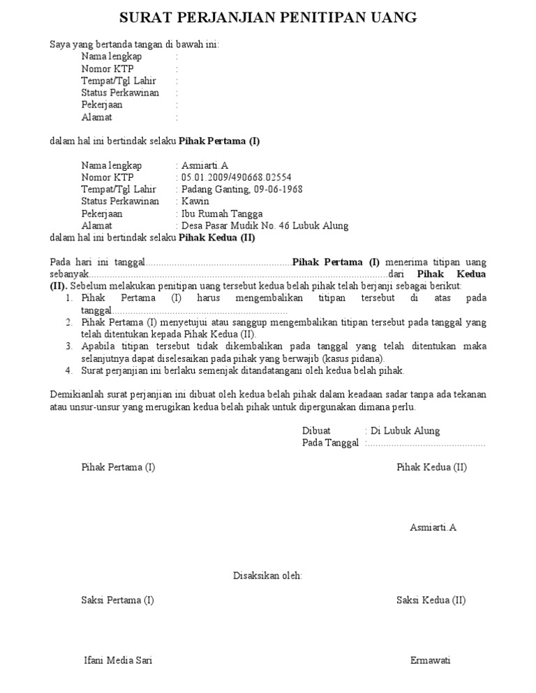 By ehalpita in types school work. Cara membuat surat perjanjian penitipan uang oleh dua pihak.