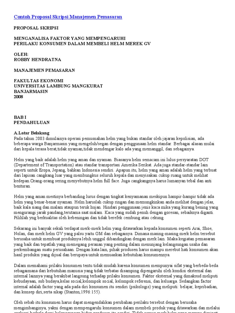 Contoh Proposal Ekonomi Contoh Proposal Skripsi Manajemen Pemasaran