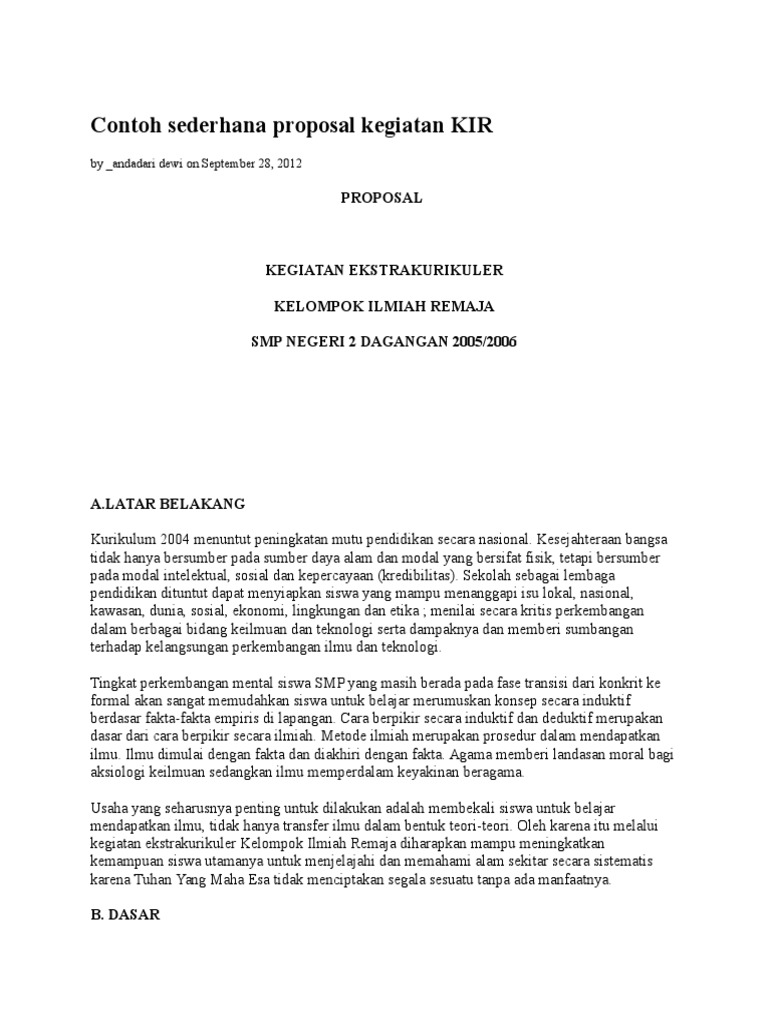 Contoh proposal kegiatan sekolah kerja osis. Contoh proposal kegiatan sekolah proposal adalah sebuah dokumen berisi rancangan kegiatan serta rancangan kerja yang dibuat secara terperinci dan diterangkan dalam bentuk sistematis berupa kumpulan data data dan tujuan sesuai dengan kegiatan yang hendak dilakukan. Proposal non formal umumnya hampir sama dengan proposal semi formal dan disampaikan dalam bentuk surat maupun memorandum.