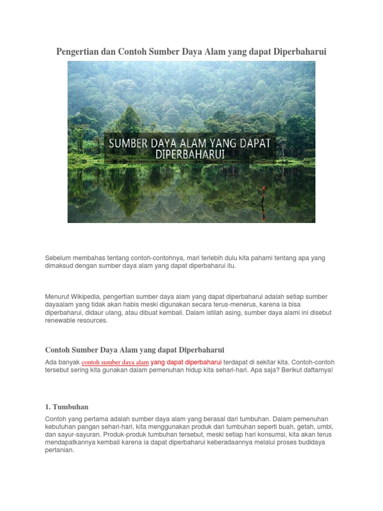 Contoh sda yang dapat diperbaharui. 10 contoh sumber daya alam yang tidak dapat diperbaharui 10 contoh sda yang tidak dapat diperbaharui. Jika di artikel sebelumnya kita membahas tentang pengertian dan contoh sumber daya alam yang dapat diperbaharui di kesempatan kali ini kita akan membahas kebalikannya yaitu pengertian dan contoh sumber daya alam yang tidak dapat diperbaharui. Contoh sda yang dapat diperbaharui contoh dari sumber daya alam yang dapat diperbaharui diantarnya adalah.