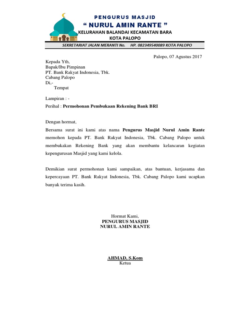 Permohonan Pembukaan Rekening Masjid