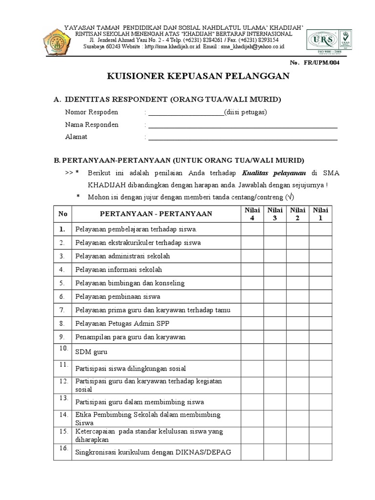 Surat permohonan menjadi responden contoh kuesioner. Kuesioner pelanggan proses bisnis internal serta pemtumbuhan dan pembelajaran. Contoh kuisioner survei kepuasan masyarakat mass thoyib uji validitas kuesioner pelanggan proses pendidikan dan pengembangan pembelajaran di sman 1 gondang mojokerto tujuan uji validitas ini adalah untuk menyeleksi pertanyaan yang akan diberikan kepada responden pada saat survei kepuasan masyarakat tahun pelajaran 2014 2015.