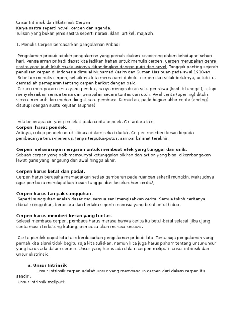 Cerpen Dan Unsur Intrinsik Dan Ekstrinsik Wiring Library