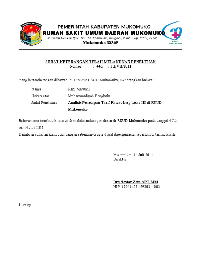 Contoh Surat Keterangan Selesai Penelitian Mr Fah Blog