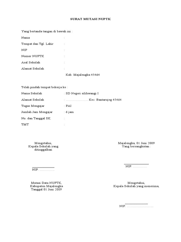 Contoh surat mutasi guru sd doc berikut adalah surat berupa file document yang dibagikan untuk kepala sekolah dasar yang sedang mencari dan akan menggunakannya untuk membuat surat mutasi bagi guru yang ingin memohon pindah dari sd asal ke sd yang baru perpindahan antar sekolah. Dan oleh sebab itulah.