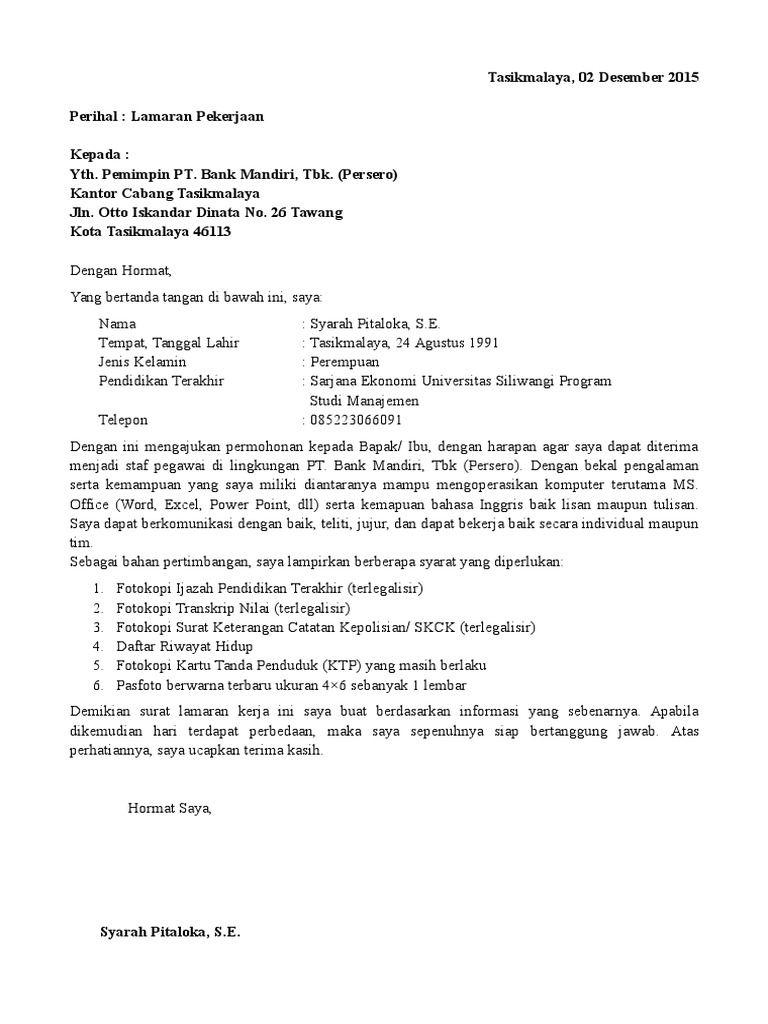 Image For Contoh Surat Lamaran Kerja Bank Mandiri Makeup Looks