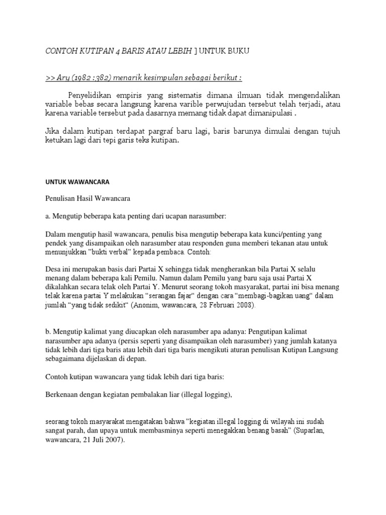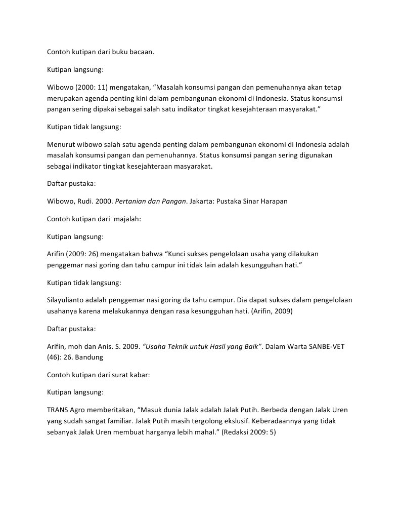 Contoh Kutipan Langsung Dan Tidak Langsung Sesuai Standar Baku Eyd