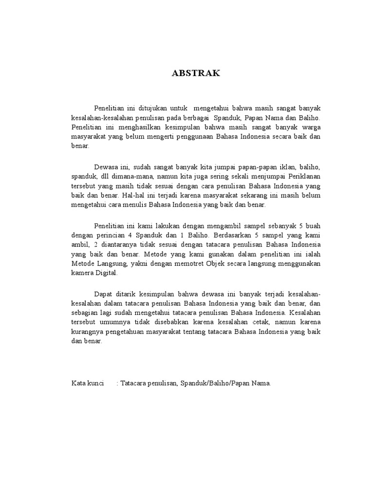 Penulisan artikel yang hidup penulisan artikel sudah seharusnya dilakukan dengan baik. Kesimpulannya untuk skripsi penulisan abstrak tergantung pada dosen pembimbing. Jadi abstrak dapat memudahkan kita dalam membuat karya tulis makalah paper dan skripsi.
