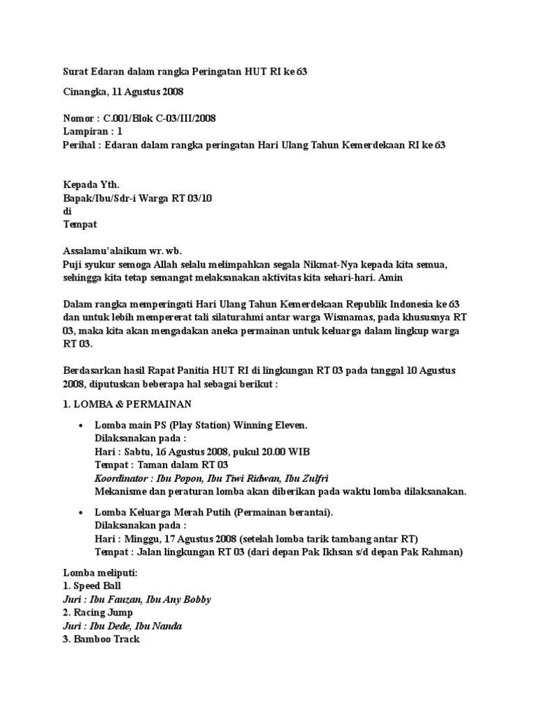 Memerangi segala hal yang dapat. Seperti pelangi surat yasin asmaul husna ayat kursi juz amma contoh surat lamaran kerja dan puisi. Contoh proposal kegiatan peringatan hut kemerdekaan ri ke 69 bagi kita semua sebagai warga negara indonesia tentu saja sangat senang dan bangga ketika hari kemerdekaan tiba.