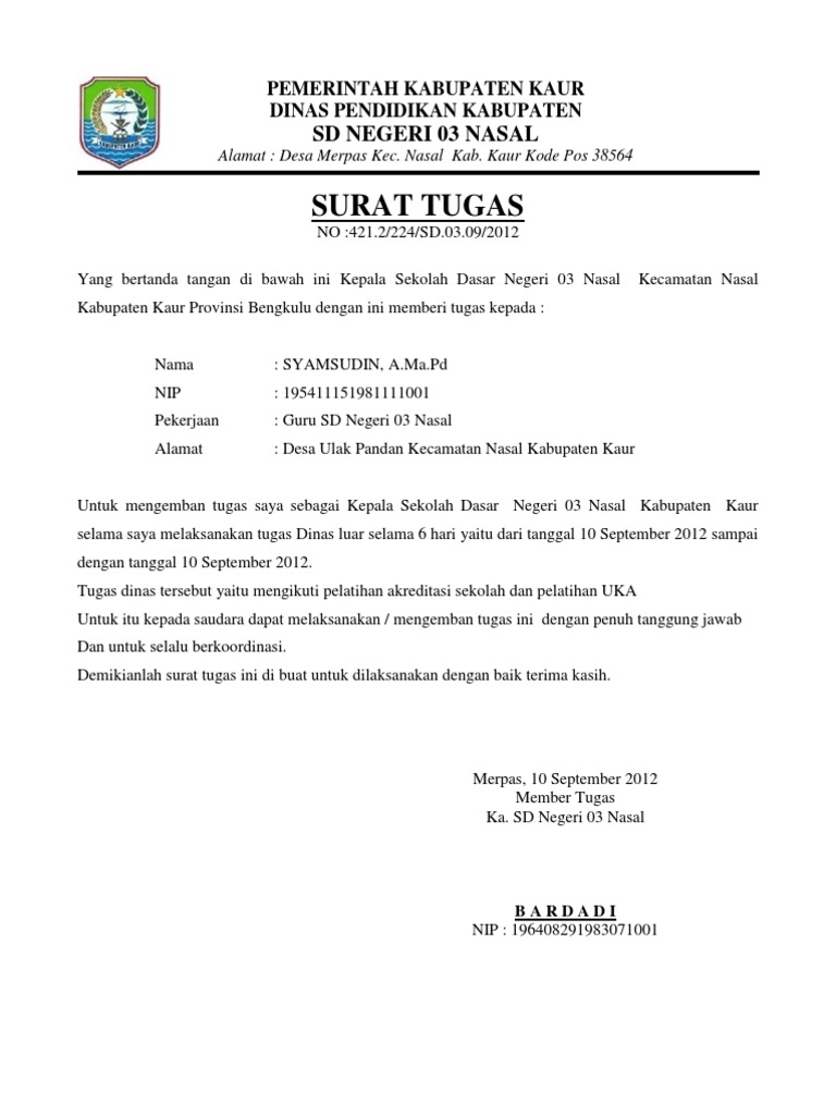 Contoh surat tugas guru. Surat yang akan saya bagikan termasuk dalam surat dinas yaitu contoh surat tugas. Untuk membaca artikel contoh surat resmi kami sebelumnya silahkan klik contoh surat perjanjian jual beli naskah.