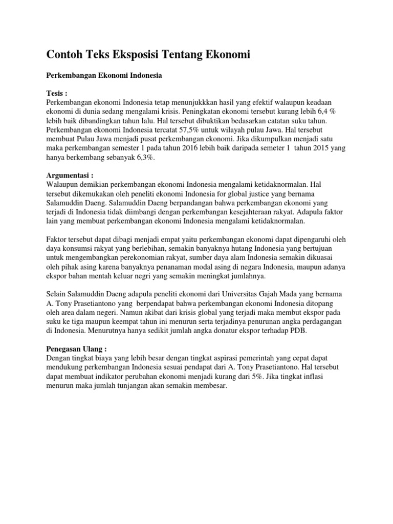 Contoh Teks Eksposisi Tentang Ekonomi Indonesia Kepada Pw 2018
