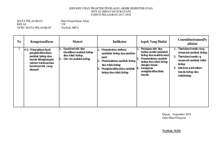 Kisi Kisi Ujian Praktek Penilaian Akhir Semester 2017 Ipa