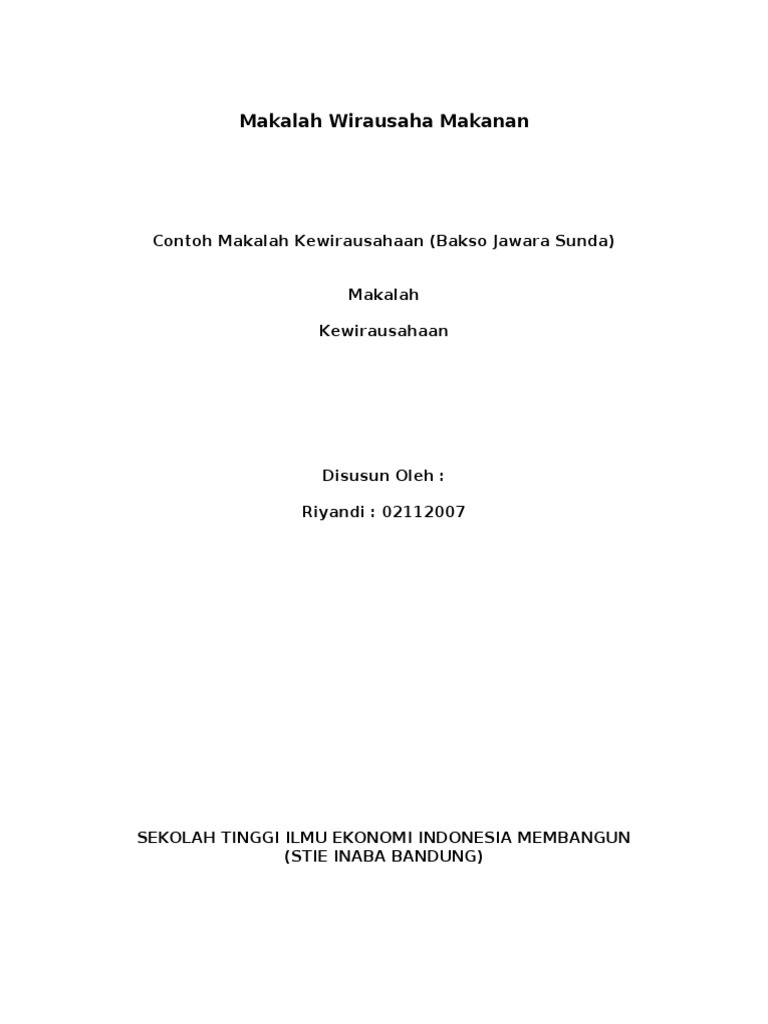 Contoh makalah kesehatan tentang pengelolaan sanitasi di tempat tempat umum sttu oleh. Makalah ini membahas tentang makalah kewirausahaan bakso jawara sunda berkaitan dengan makalah kewirausahaan yaitu wirausaha makanan bakso dengan beberapa penjelasan mulai dari kata pengantar makalah latar belakang penulisan makalah tujuan penulisan makalah dilanjutkan dengan pembahasan makalah mengenai berapa keuntungan dari wirausaha makanan bakso bagaimana menciptakan usaha makanan yang sehat dan penjelasan lainnya tentang wirausaha makanan. Mulai dari contoh latar belakang makalah agama contoh latar belakang makalah sejarah contoh latar belakang proposal usaha makanan kecil contoh latar belakang pkl contoh latar belakang tugas akhir contoh latar belakang jurnal dll.