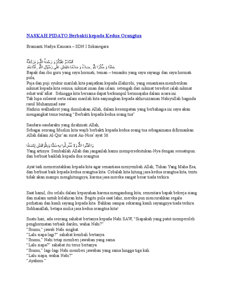 Naskah Pidato Berbakti Kepada Kedua Orangtua