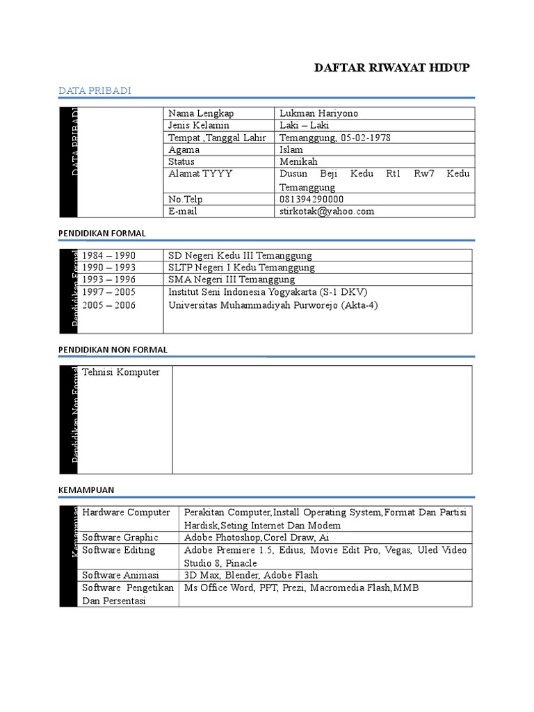 Contoh Cv Daftar Riwayat Hidup Pdf Doc Layout I