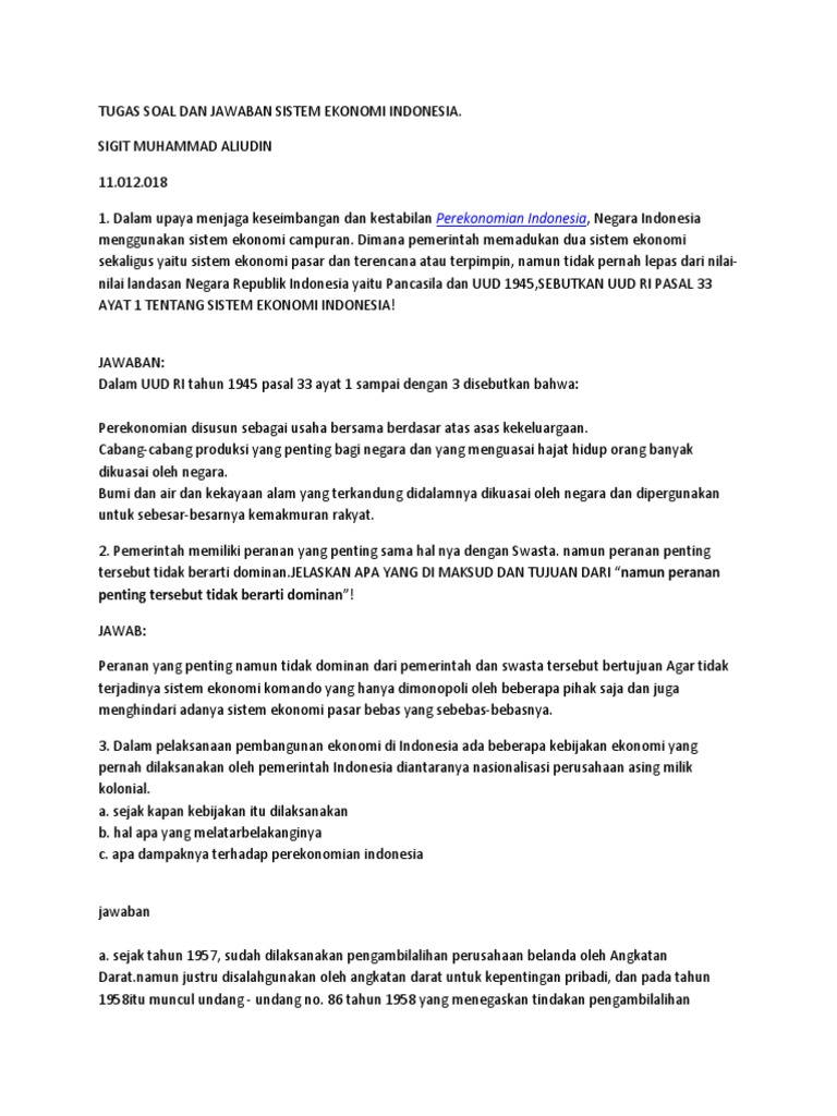 Tugas Soal Dan Jawaban Sistem Ekonomi Indonesia Sigit Muhammad