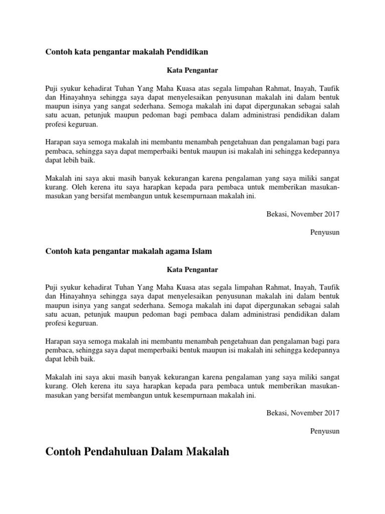 Contoh pendahuluan hallo sahabatnesia pernah enggak sih kalian membuat sebuah makalah atau laporan di sekolah. Contoh cover kata pengantar dan pendahuluan makalah tanpa daftar isi 0049 10 comments disusun guna memenuhi tugas dari pengajar mata pelajaran pendidikan kewarganegaraan. Makalah berikut adalah contoh kata pengantar makalah atau pendahuluan makalah serta cara membuatnya.