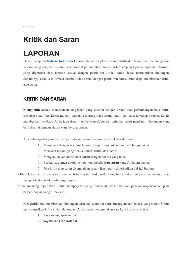 Alangkah baiknya jika valentino dan tim terus berusaha untuk mengoptimalkan performa mesin. 25 contoh kalimat tanggapan dan saran yang baik dan benar ada dua jenis kalimat yang sering digunakan dalam kehidupan sehari hari. Contoh kalimat tanggapan dalam diskusi yang baik dan benar bahasa indonesiaku contoh kalimat tanggapan dalam diskusi dalam kesempatan kali ini saya akan memberikan beberapa contoh kalimat tanggapan yang baik dan benar.