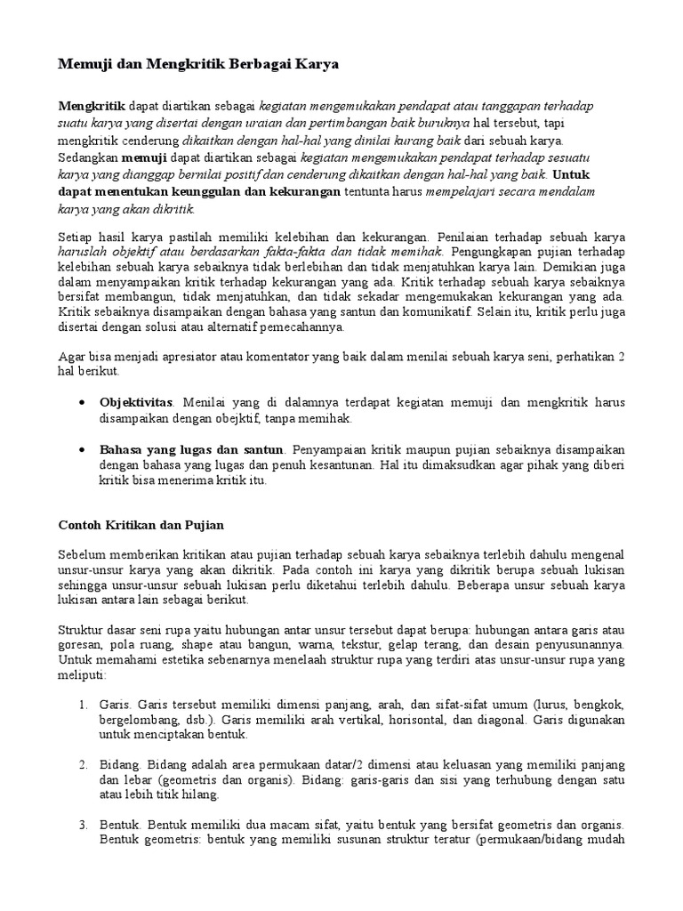 Memuji Dan Mengkritik Berbagai Karya