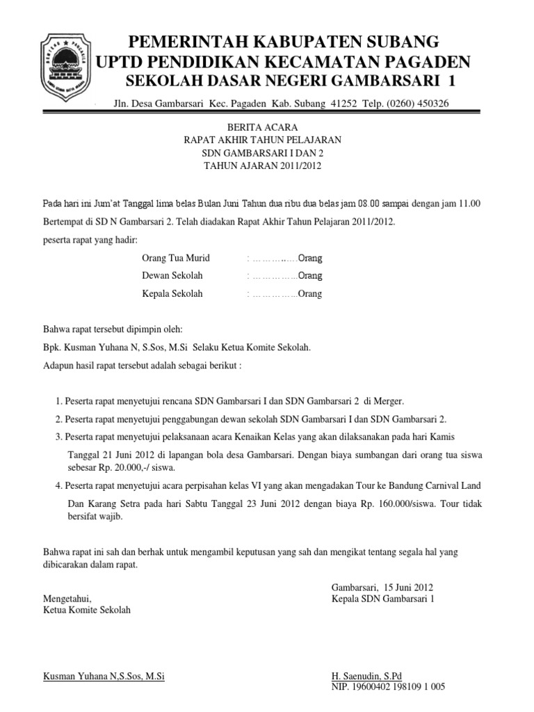 Contoh Berita Acara Rapat Komite Sekolah Contoh Si