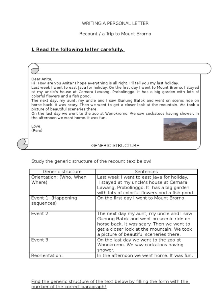Writing A Personal Letter Recount Grammar Language Mechanics