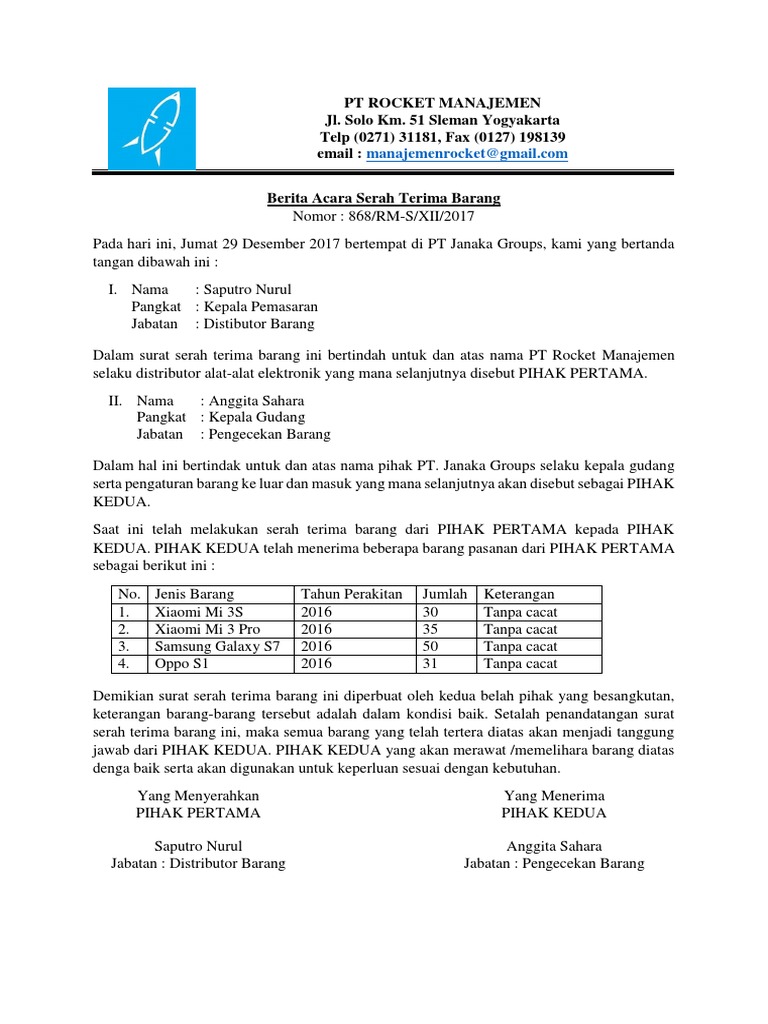 Berita acara serah terima barang merupakan termasuk dokumen penyerahan barang yang amat krusial. Pengertian berita acara serah terima barang. Contoh berita acara serah terima barang jneco.