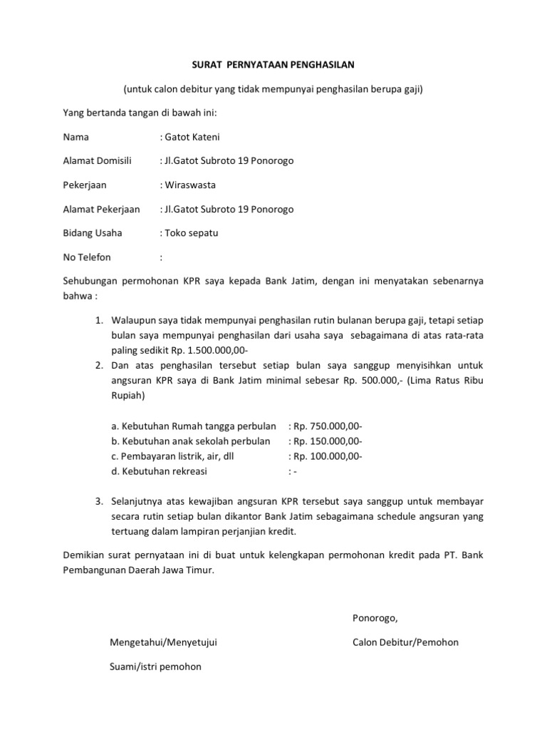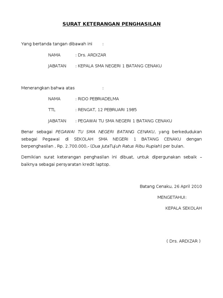Contoh Surat Keterangan Penghasilan Contoh Surat